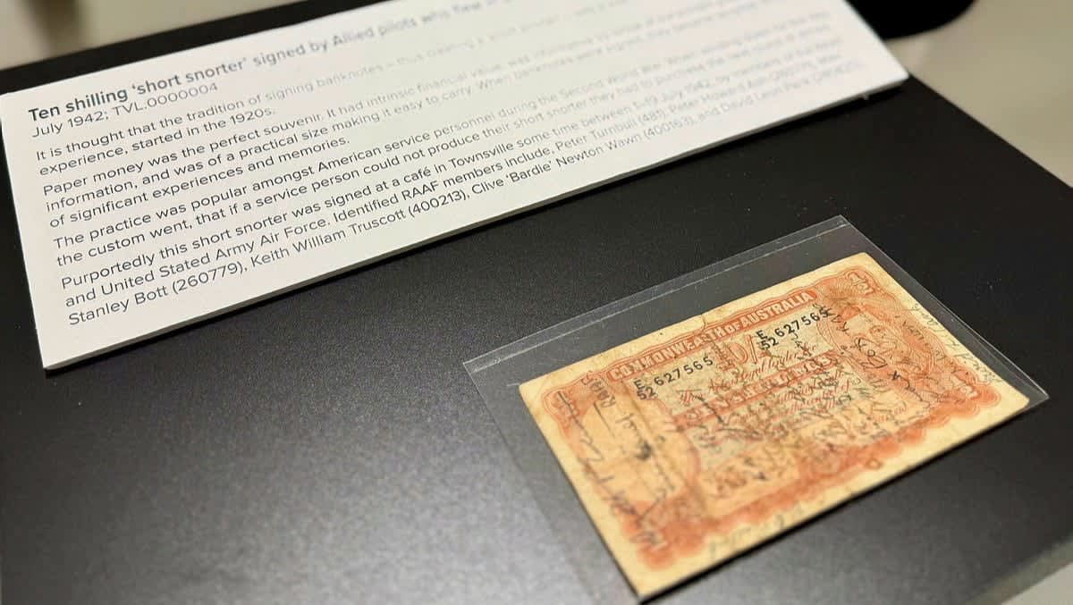 The “short snorter” on display at the RAAF Townsville Aviation Heritage Centre. (Image: FLGOFF Casie Scott) Another piece of wartime…